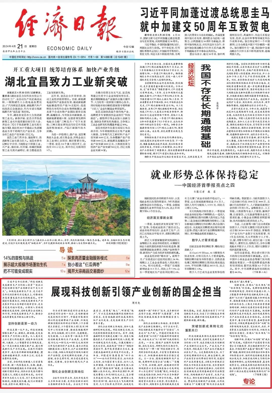 4月21日,《經(jīng)濟(jì)日?qǐng)?bào)》一版刊發(fā)中國(guó)建材集團(tuán)黨委書記、董事長(zhǎng)周育先的專論,文章圍繞“加快發(fā)展新質(zhì)生產(chǎn)力”展開論述,闡述堅(jiān)持創(chuàng)新是第一動(dòng)力,更好發(fā)揮企業(yè)創(chuàng)新主體作用,努力突破創(chuàng)新成果轉(zhuǎn)化的重要關(guān)口。下面一起來(lái)看詳細(xì)內(nèi)容~